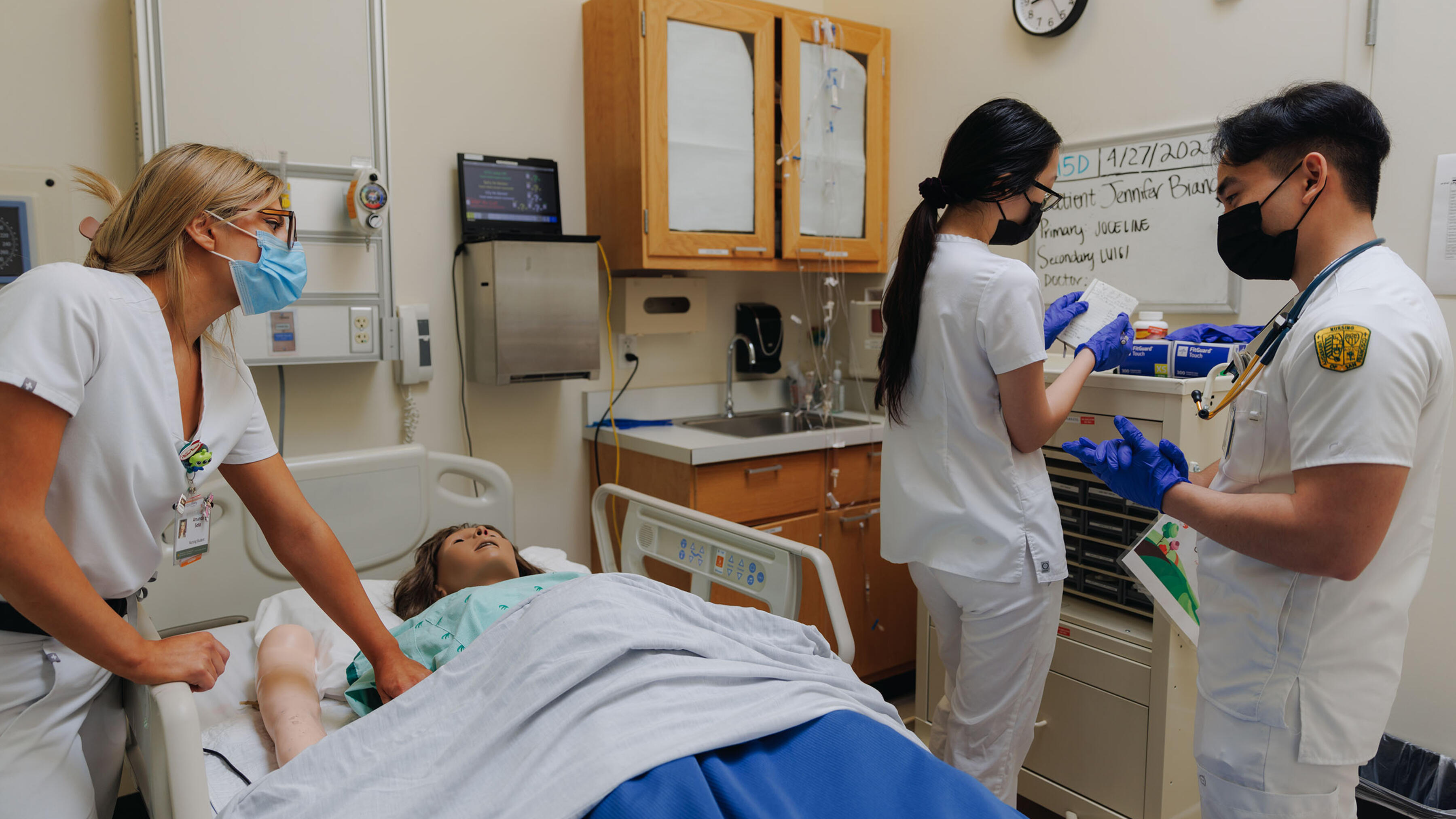 护理临床领导(Clinical Nurse Leader)项目学生、同时也是技能实验室助教的 Kaitlyn Chau MSN ’26,会在这些模拟人身上反复练习操作,不仅用于提升自己的技能,也用于指导她所带领的学生。